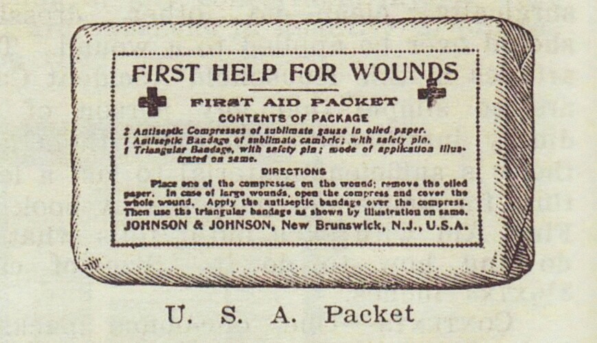 西美战争爆发时强生仅成立12年。应美国陆军的要求,公司负责生产救助伤病员的战地急救物品,包括敷布和绷带(如上图所示)。当战场上的需求超出预算时,强生决定继续不遗余力地提供免费急救物资。