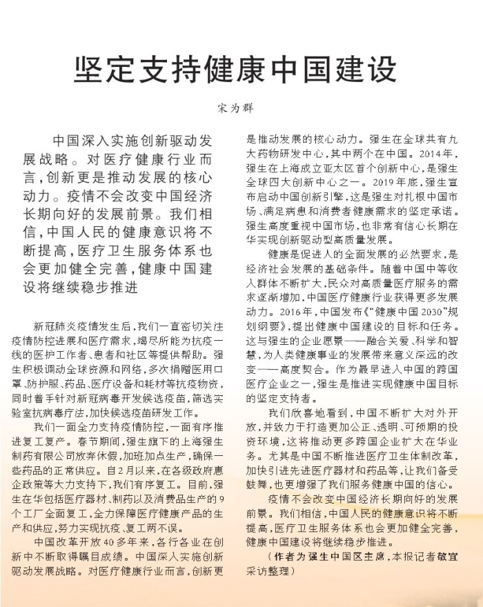 坚定支持健康中国建设