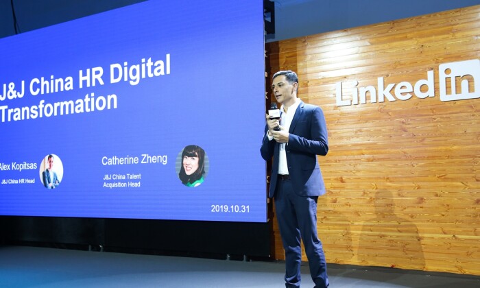 Head of Human Resources for Johnson & Johnson China Alex Kopitsas made a speech at a LinkedIn event.